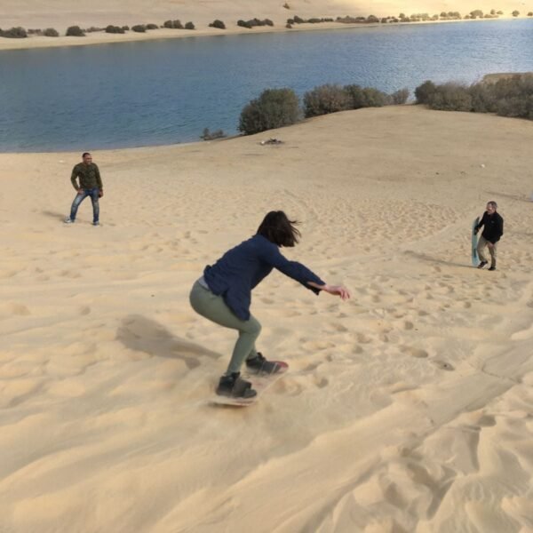 Seeing El Fayoum beautiful sand dunes and trying the experience of sandboarding